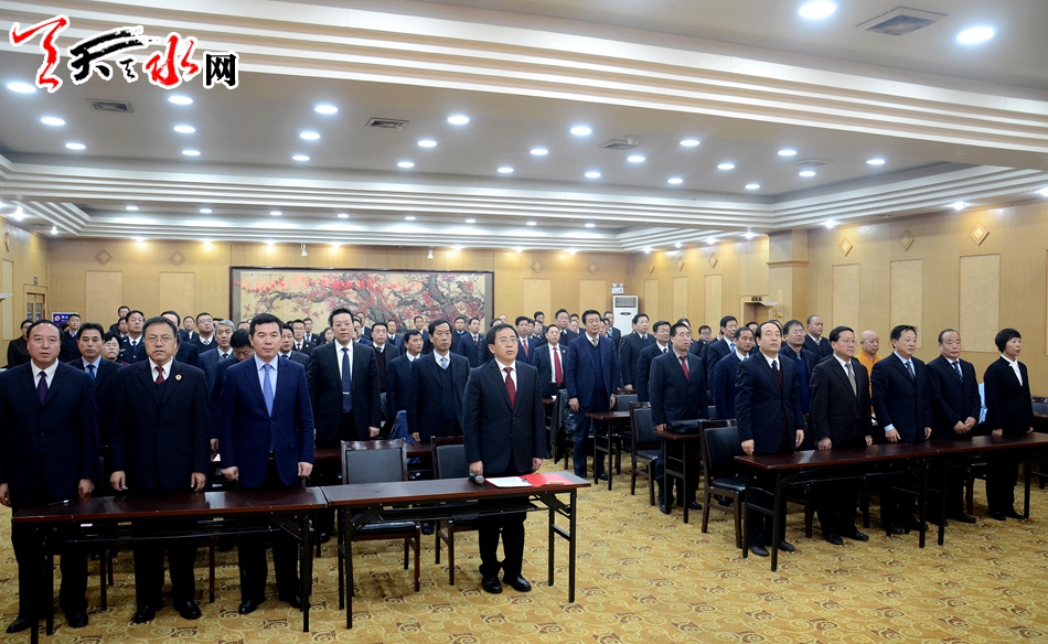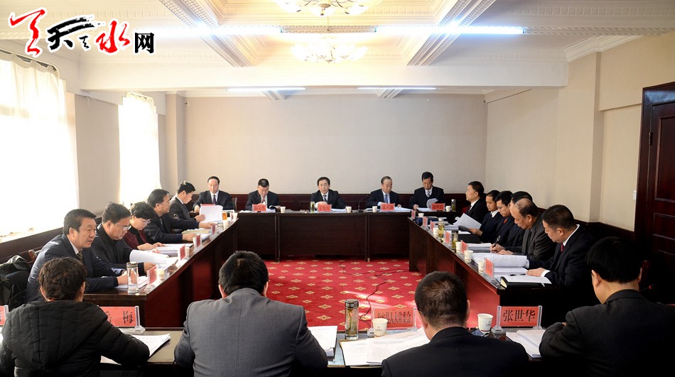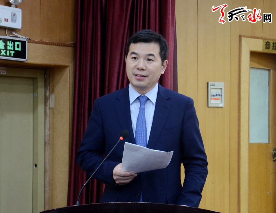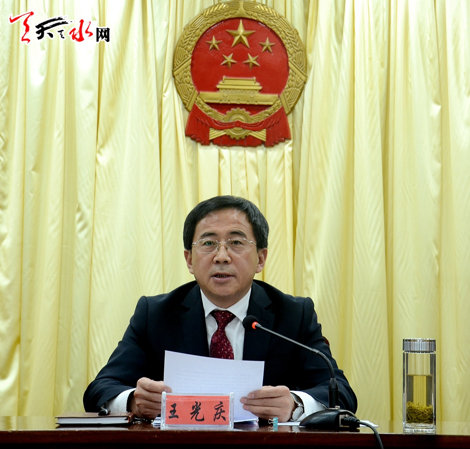 ▲天水市人大常委會(huì)黨組書(shū)記、主任王光慶主持第一次全體會(huì)議并講話