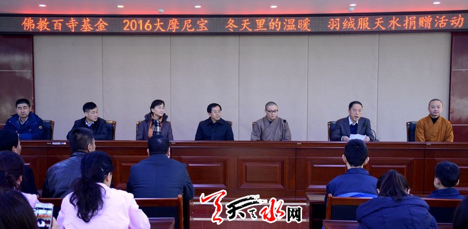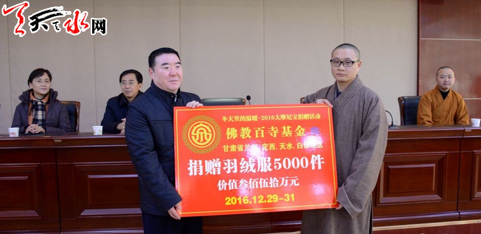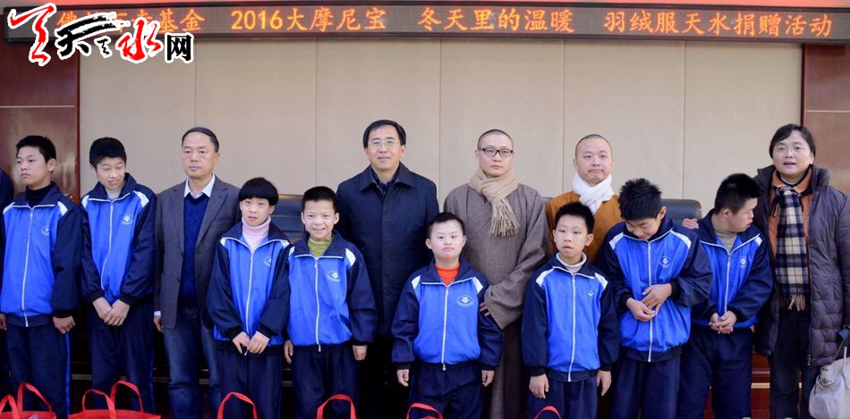 天天天水網(wǎng)訊【記者王曉馨】12月29日,“佛教百寺基金·2016年大摩尼寶·冬天里的溫暖·羽絨服捐贈活動”在天水市舉行。該基金向市特殊教育學(xué)校、市兒童福利院、市社會福利院及甘谷縣、武山縣、秦安縣、秦州區(qū)捐贈2240件羽絨服,價值156.8萬元。