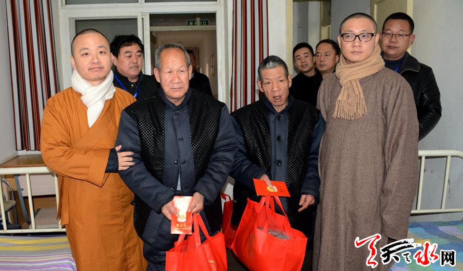 捐贈儀式結(jié)束后,演圣法師一行慰問了市社會福利院老人。