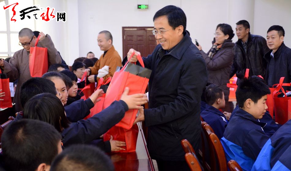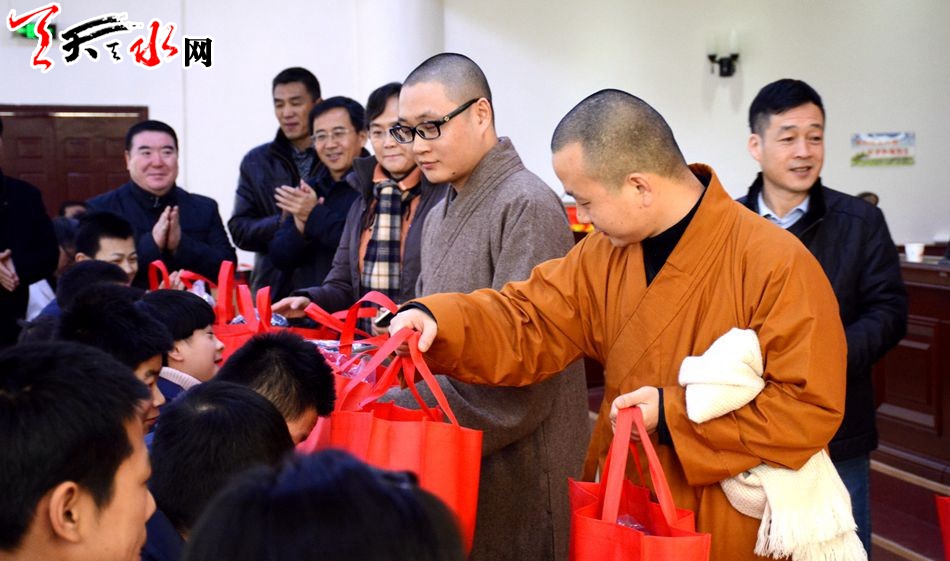 天水市人大常委會主任王光慶,佛教百寺基金功德會副會長演圣法師,省宗教局業(yè)務(wù)二處調(diào)研員徐彥等參加捐贈活動,并為市兒童福利院的孩子們發(fā)放了羽絨服。