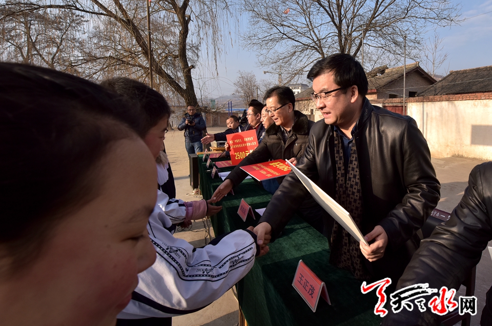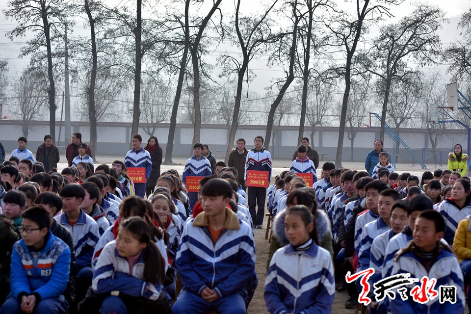 ????天天天水網(wǎng)訊【記者何永德 楊曉斌】“在這寒冷的隆冬,我們的心是暖和的,因?yàn)橛邢蠹荫R加這樣的好心人幫助了我們,讓我們這些家境貧寒的孩子們看到了希望的曙光,讓們可以完成學(xué)業(yè),用知識(shí)來(lái)改變未來(lái)的人生道路……”,受助學(xué)生張照辛激動(dòng)地說(shuō),元月3日,在天水市麥積區(qū)街子初級(jí)中學(xué)涌來(lái)一股暖流,“首屆‘中國(guó)天水.李杜詩(shī)歌節(jié)’金獎(jiǎng)獲得者吉狄馬加捐資助學(xué)獎(jiǎng)金捐助儀式”隆重舉行,20名品學(xué)兼優(yōu)的學(xué)生得到了資助。