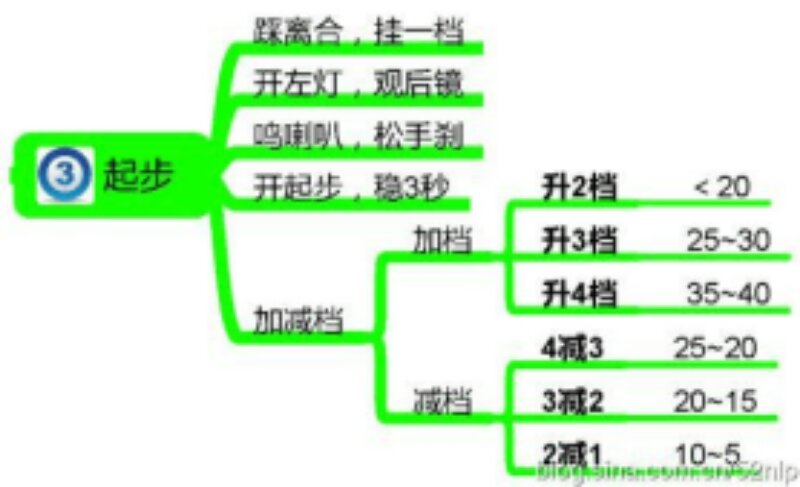 3、起步:起步前打左轉(zhuǎn)向燈,按喇叭,掛1擋松手剎,勻速完成起步;