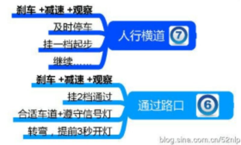 8、通過人行橫道:減速慢行,松油門,時速不超過25公里(遇到行人時必須停車等待:停車-拉手剎-掛空擋-左轉(zhuǎn)向-掛1擋松手剎起步正常行駛);