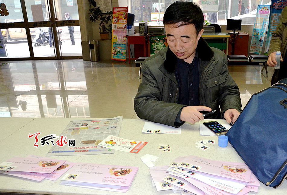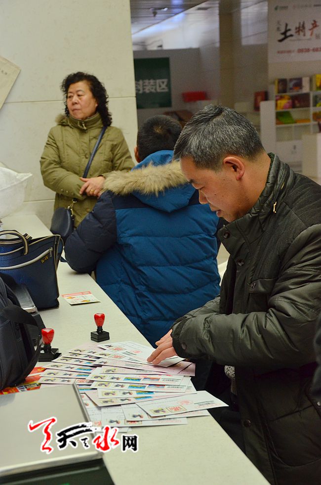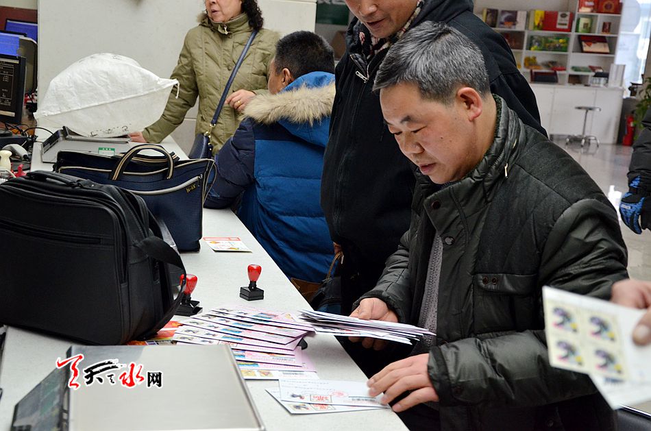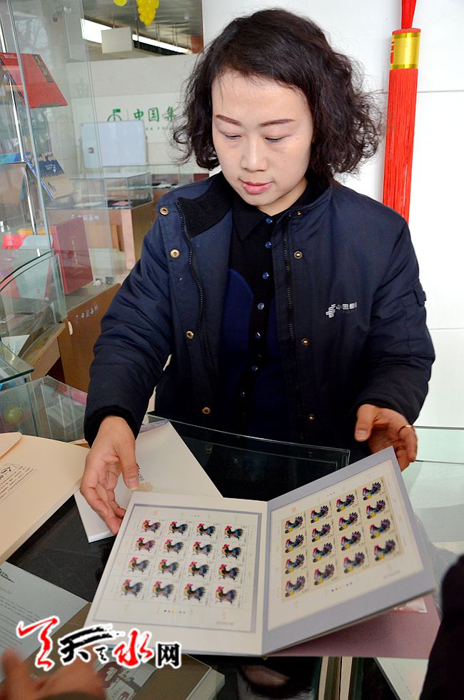 天天天水網(wǎng)訊【記者 張文都】1月5日上午,中國郵政集團(tuán)公司天水分公司營業(yè)部人頭攢動,前來購買雞年生肖郵票的集郵愛好者將營業(yè)廳圍得水泄不通。5日,中國郵政發(fā)行了2017年首套郵票——《丁酉年》特種郵票一套兩枚,面值共2.40元,受到廣大集郵者的熱捧。