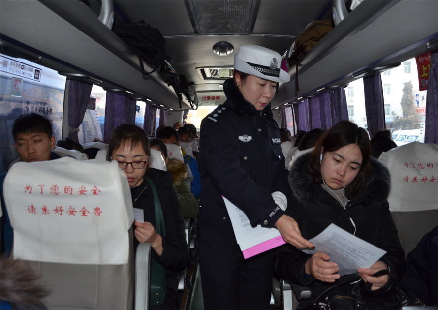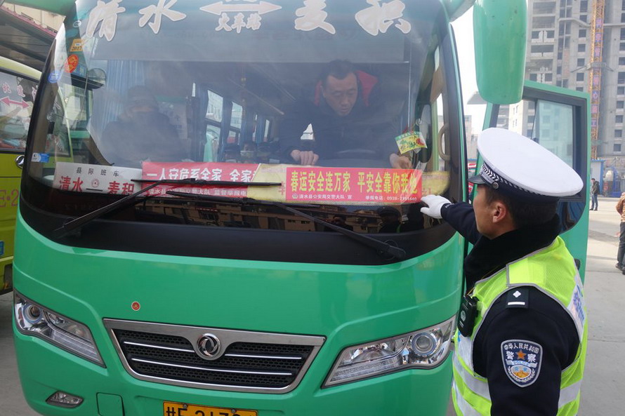 ??? 清水縣公安局交警大隊(duì)在順達(dá)運(yùn)輸公司組織警力向廣大駕駛?cè)思俺丝蜕l(fā)《致廣大交通參與者的一份信》、贈(zèng)送安全提示卡片和客運(yùn)駕駛?cè)税踩R讀本等宣傳資料,積極倡導(dǎo)平安春運(yùn)理念。
