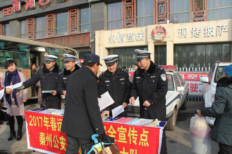 1月13日,是全國2017年春運(yùn)工作啟動(dòng)日。為切實(shí)做好全年春運(yùn)道路交通安全宣傳工作,增強(qiáng)廣大交通參與者安全出行和文明出行意識,最大限度地預(yù)防和減少道路交通事故的發(fā)生,營造平安祥和的春運(yùn)氛圍,天水公安交警系統(tǒng)按照省公安廳交管局和市委、市政府、市公安局的安排部署,以“平安春運(yùn)、交警同行”為主題,在轄區(qū)車站、廣場等地組織開展了內(nèi)容豐富、形式多樣的春運(yùn)啟動(dòng)日集中宣傳活動(dòng)。