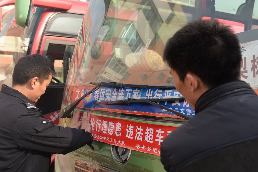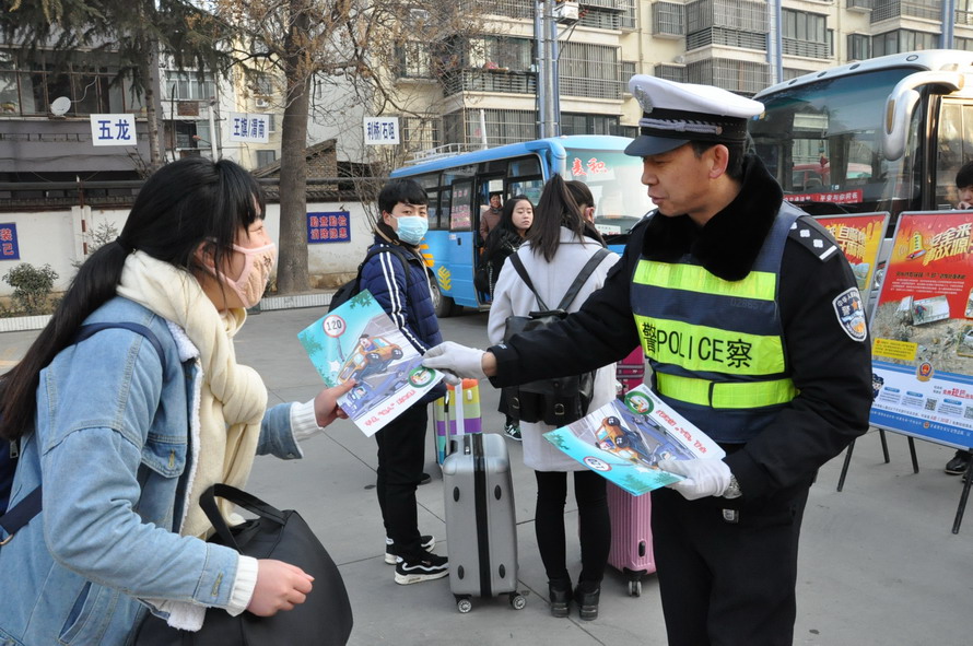 秦安縣公安局交警大隊(duì)在汽車北站邀請縣領(lǐng)導(dǎo)共同參與“暖冬行動(dòng)”志愿者春運(yùn)服務(wù)活動(dòng),副縣長到待發(fā)車輛上向乘客散發(fā)了交通安全宣傳單,向他們送去了安全出行提示和新春祝愿。志愿者們還幫助乘客推送行李,系安全帶,贏得了旅客的高度贊揚(yáng)。