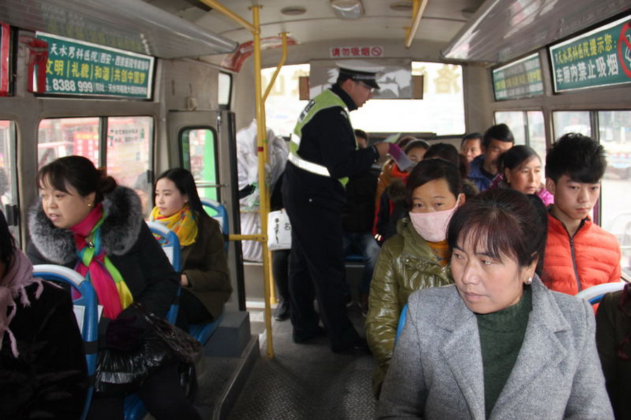秦州公安分局郊區(qū)交警大隊(duì)在南湖車站設(shè)立春運(yùn)啟動(dòng)宣傳點(diǎn),,宣傳民警把《致駕駛?cè)说囊环庑拧?、《致交通參與者的一封信》、《春運(yùn)交通安全提示》、《春運(yùn)交通安全常識》等春運(yùn)宣傳單分別送給春運(yùn)駕駛?cè)恕④囍?、售票員手中,登上春運(yùn)客車,進(jìn)行面對面的宣講,增強(qiáng)了春運(yùn)參與者的交通安全責(zé)任意識,提高了他們遵守交通安全法律法規(guī)的主動(dòng)性、自覺性。