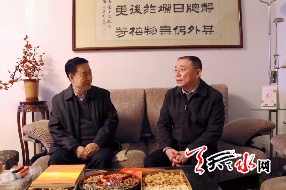????“快過(guò)年了,我們代表市委、市政府來(lái)看看你們?!币蛔哌M(jìn)退休老干部王志榮家中,王銳便與王志榮親切交談,饒有興致地探討起書(shū)法藝術(shù),并向他簡(jiǎn)要介紹2016年全市經(jīng)濟(jì)社會(huì)發(fā)展總體情況,希望他在保重身體的同時(shí),繼續(xù)發(fā)揮余熱,一如既往地為天水經(jīng)濟(jì)社會(huì)發(fā)展建言獻(xiàn)策,推動(dòng)天水經(jīng)濟(jì)社會(huì)轉(zhuǎn)型升級(jí)發(fā)展。在退休老干部何文杰家中,王銳向何文杰?chē)u寒問(wèn)暖,關(guān)切地詢(xún)問(wèn)老人的身體和家庭生活情況,并囑咐老人保重身體、安享幸福晚年。