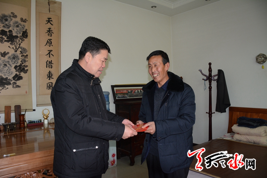 ??? 天天天水網(wǎng)訊【記者楊璟】1月17日,春節(jié)將近,市委副書記王軍,市人大常委會副主任安志宏,市政協(xié)副主席郭明興、唐宏偉帶領(lǐng)市直有關(guān)部分負責人帶著黨和政府的親切關(guān)懷前往甘谷縣開展“送溫暖”慰問活動。
