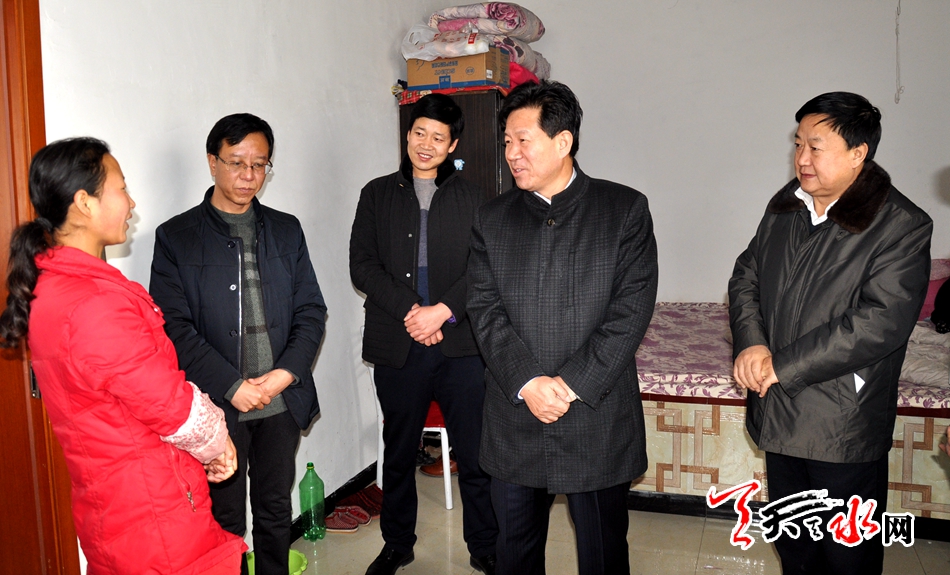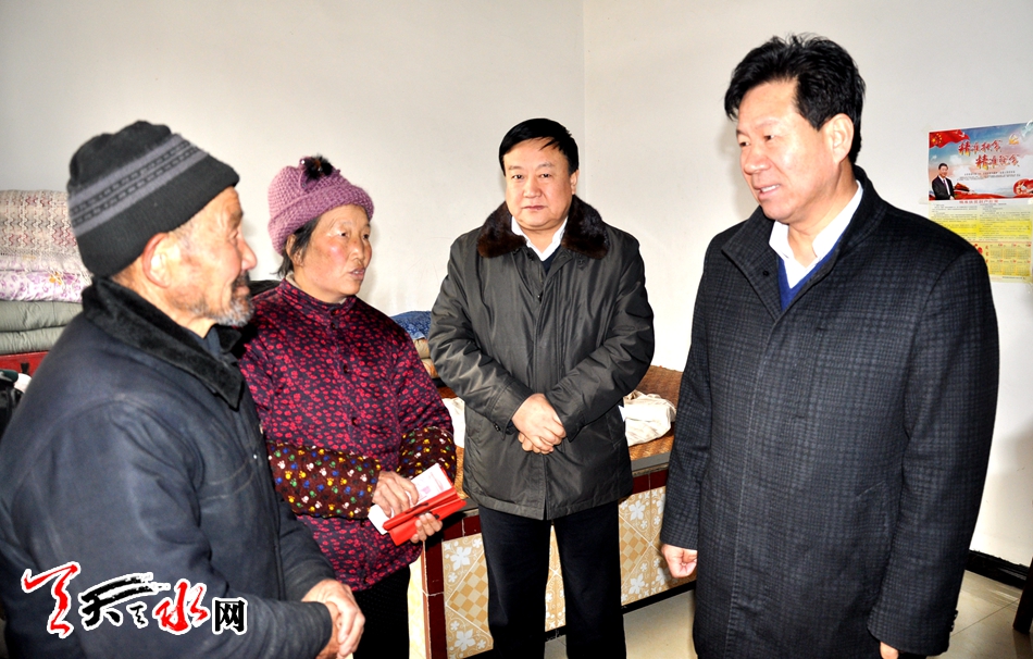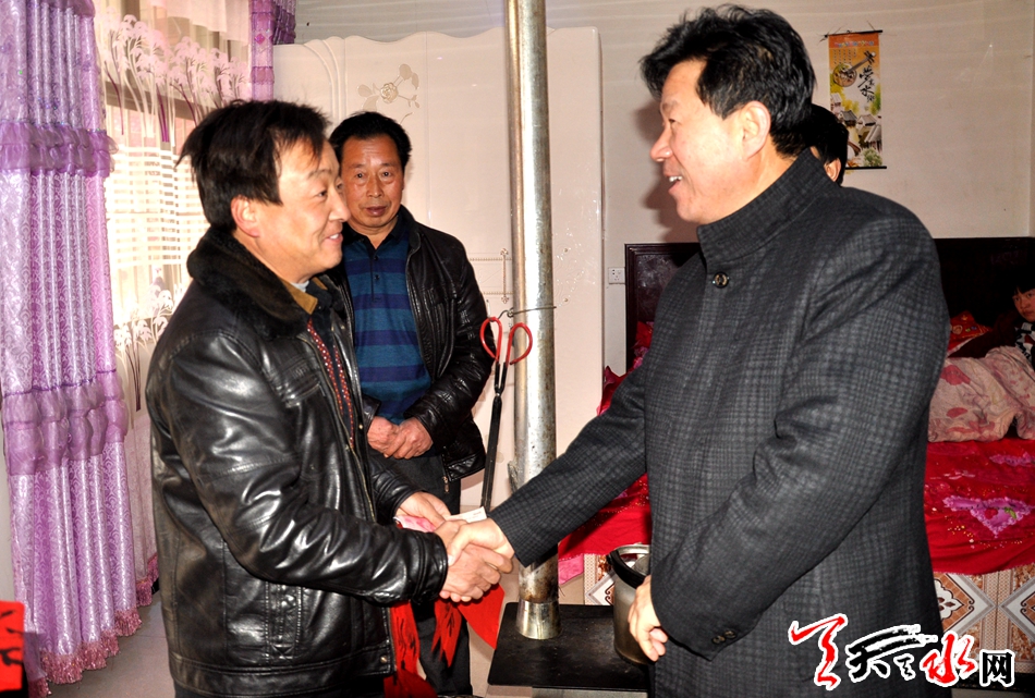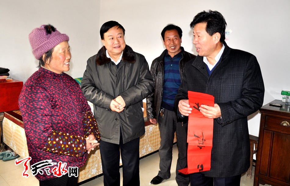 ????天天天水網(wǎng)訊【記者徐強(qiáng)】1月20日上午,市政協(xié)主席張明泰一行來到雙聯(lián)點(diǎn)秦州區(qū)娘娘壩鎮(zhèn)舒家壩村,看望慰問了兩個(gè)聯(lián)系戶,為他們送去新春的祝福與問候。