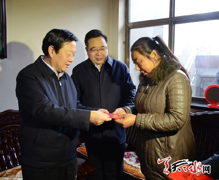 ????? 天天天水網(wǎng)訊【記者郝勤學(xué)】1月19日,市委副書記、市長(zhǎng)楊維俊赴麥積區(qū)慰問困難群眾、困難企業(yè)、困難黨員和優(yōu)秀知識(shí)分子、勞動(dòng)模范等,代表市四大組織向他們致以新春的祝福和良好的祝愿。