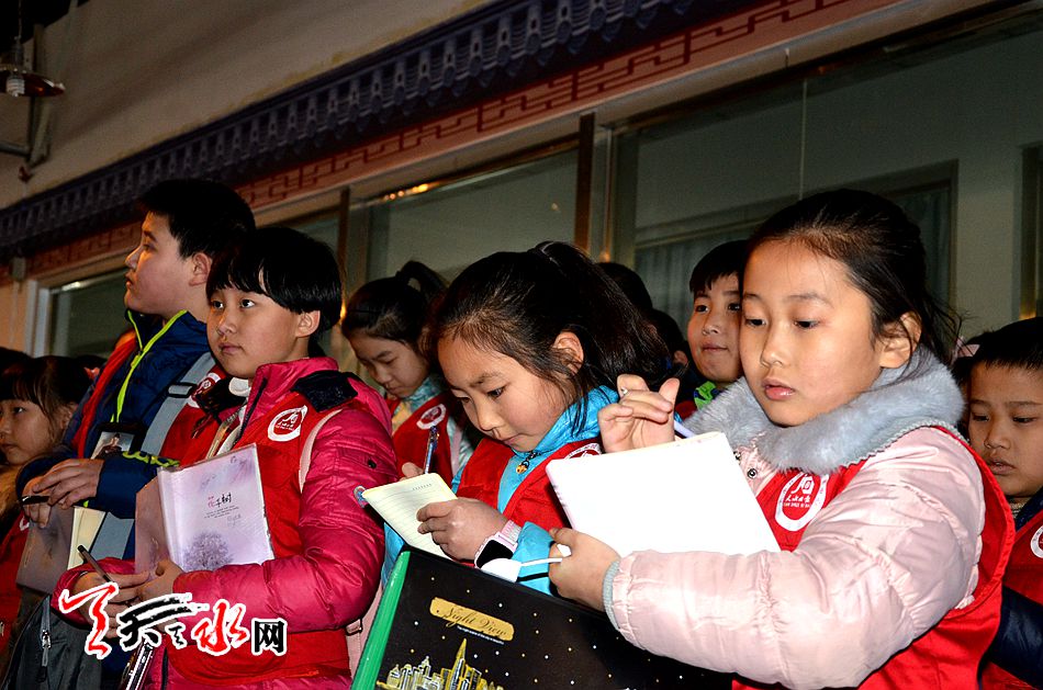 “我想寫一篇挖掘和保護非物質文化遺產的消息,呼吁社會把這些瀕臨失傳的文化瑰寶繼承和傳承下去,讓我們民族的古老文化發(fā)揚光大?!碧焖袑嶒炐W六年級的王雨欣說:“皮影戲太美妙了,聆聽起來像回到了遠古時代,天水的古老文化太精妙了”。