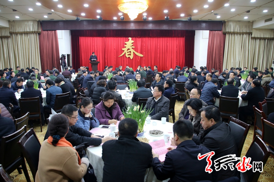 ???? 天天天水網(wǎng)訊【記者王曉馨】一杯清茶迎新春,滿腔熱情話發(fā)展。1月22日,天水市舉行迎春茶話會(huì),全市黨政軍及各族各界人士代表歡聚一堂,暢敘友情,同迎新春,共話發(fā)展。