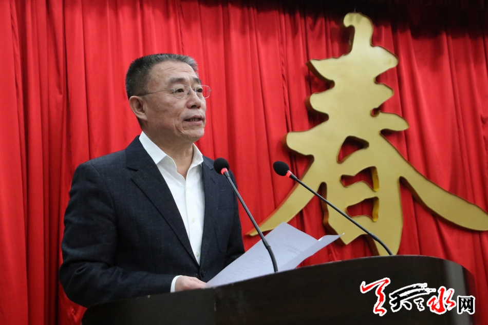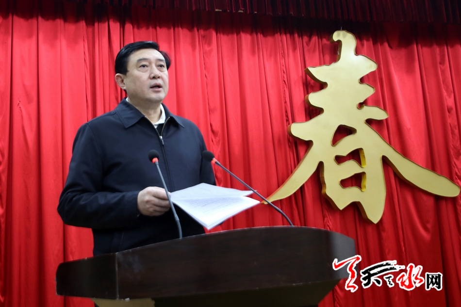 王銳在講話中代表市委、市人大、市政府、市政協(xié)、天水軍分區(qū),向全市各族人民,向駐市部隊(duì)、武警官兵和公安干警,向各民主黨派、人民團(tuán)體、工商聯(lián)、無黨派和愛國宗教人士,向關(guān)心支持天水改革發(fā)展的社會(huì)各界朋友,致以誠摯的問候和美好的祝愿。