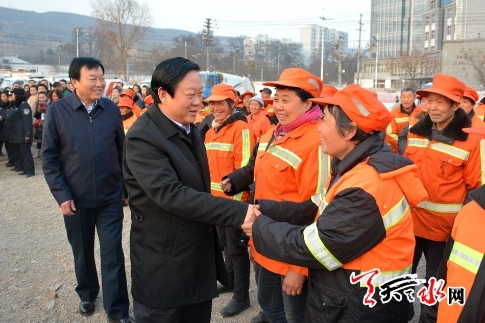 ????在麥積區(qū)和秦州區(qū)環(huán)衛(wèi)局,楊維俊與環(huán)衛(wèi)工人一一握手,感謝他們長期以來在最辛苦的崗位上默默忙碌、忘我工作,節(jié)日期間仍然堅守崗位,奮戰(zhàn)在一線,為城市的整潔、美麗作出了重要貢獻(xiàn)。他希望大家繼續(xù)發(fā)揚吃苦耐勞、樂于奉獻(xiàn)的優(yōu)良傳統(tǒng),為全市人民過一個歡樂、祥和、干凈的春節(jié),為營造良好的城市環(huán)境做出新的更大貢獻(xiàn)。