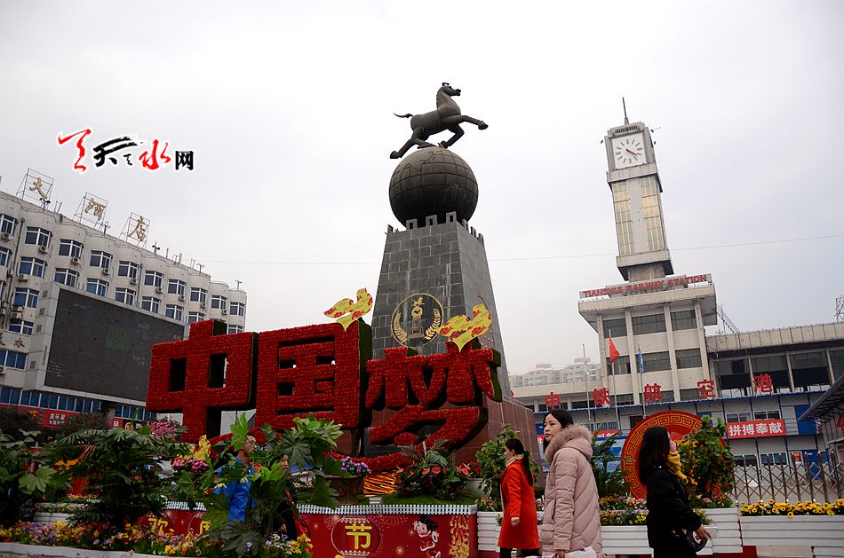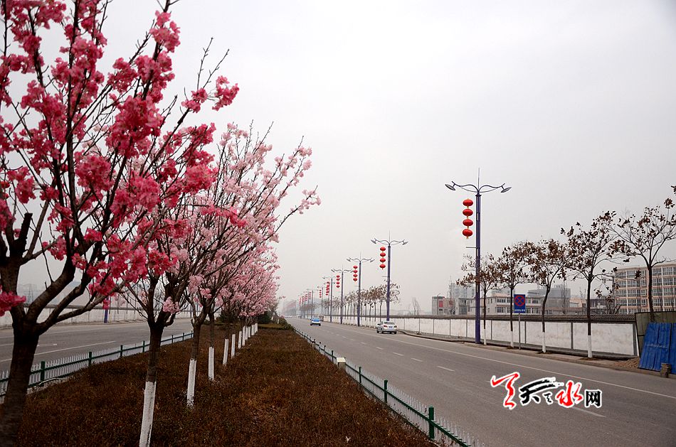 1月25日,農(nóng)歷二十八。春節(jié)臨近,麥積區(qū)張燈結(jié)彩披掛盛裝喜迎新春。漫步在大街小巷,裝扮一新的城區(qū)仿佛“忽如一夜春風(fēng)來,千樹萬樹梨花開”的美景令人陶醉。渭河兩岸,馬跑泉大道等城區(qū)街道桃花“夭夭”,五彩繽紛的節(jié)日盛裝猶如一股春風(fēng)拂面而來。在這激情涌動的土地,她正以雄渾昂揚(yáng)的風(fēng)姿,綻放著雞年旖旎繽紛的美艷春光。