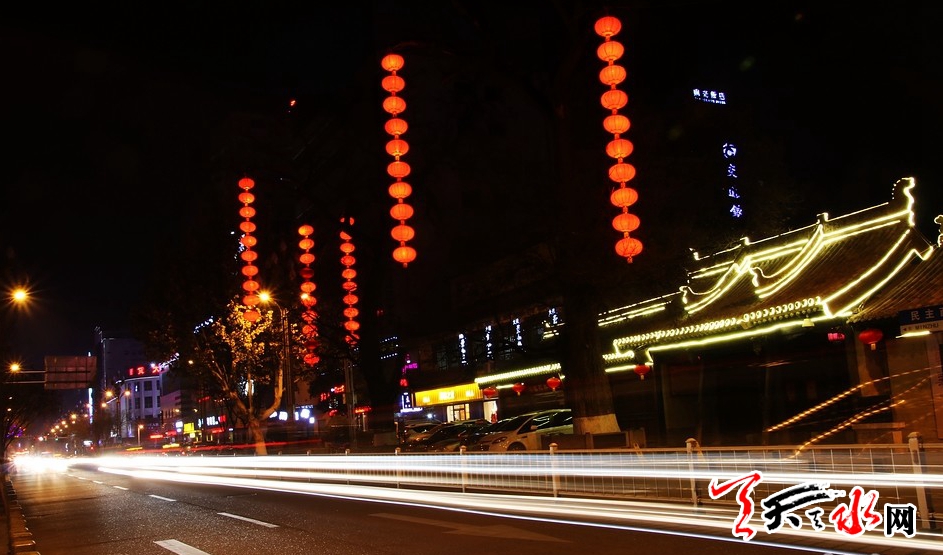 ??? 春節(jié)將至,天水街頭裝扮一新,火紅的燈籠讓城市充滿喜慶,與干凈整潔的街道相得益彰,營造出了濃厚的年味?!∮浾?肖勇 何永德 張文都 攝