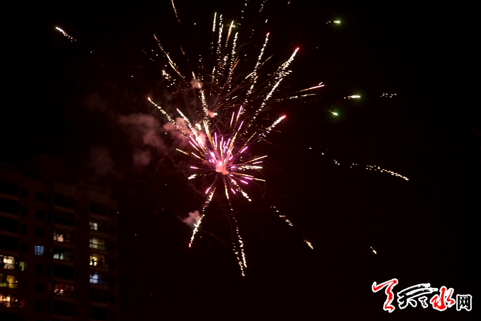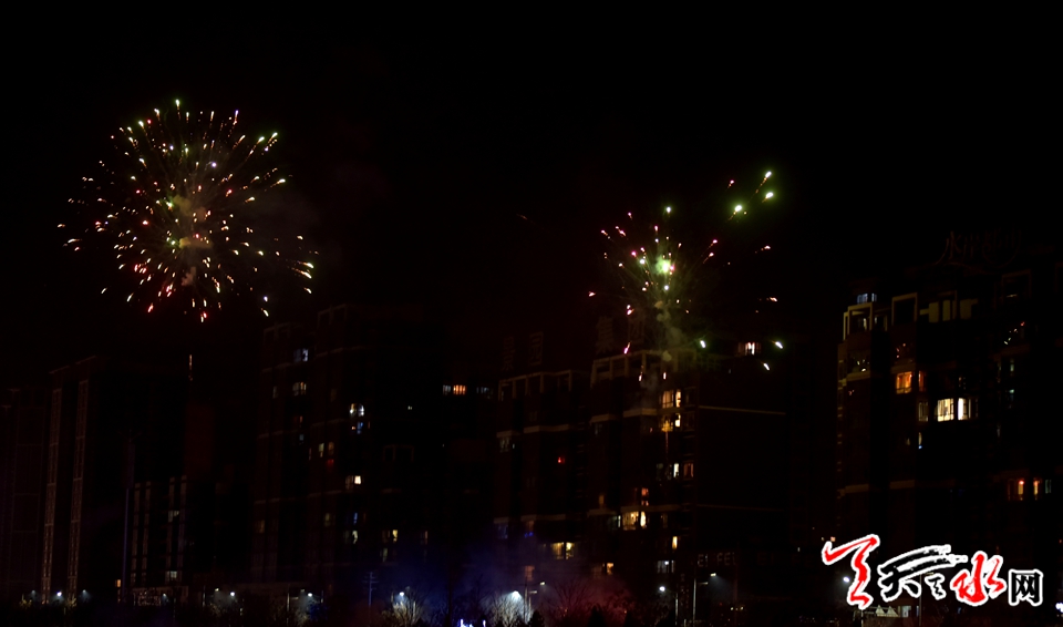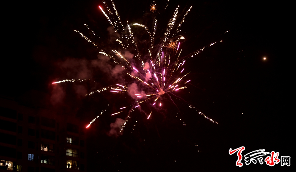 藉河畔,小巷里,爆竹聲聲辭舊歲,天水間,古城中禮花朵朵不夜天,人們用這種祖輩沿襲的傳統(tǒng)方式,共祝新年吉祥如意,國泰民安!