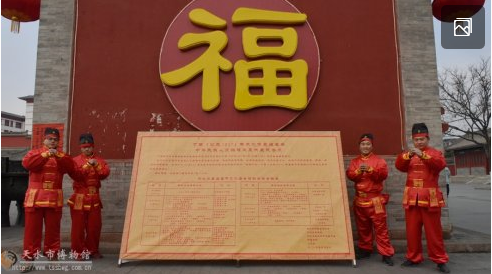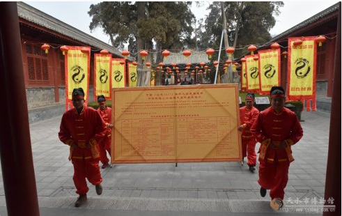 2月5日(農歷初九)上午,吉祥中華——丁酉(2017)年天水伏羲廟春節(jié)廟會舉行出告文儀式,將《天水伏羲廟春節(jié)文化廟會活動內容安排表》以傳統(tǒng)告文的形式向市民公告。