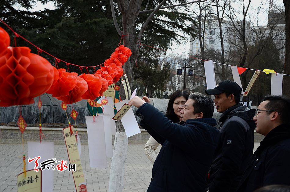 天天天水網(wǎng)訊【記者 張文都】每年元宵佳節(jié)之際,人們觀燈猜謎依然成為元宵佳節(jié)的一道靚麗風(fēng)景。2月10日,正月十四,天水市人民公園100多盞異彩紛呈的大紅燈籠和五顏六色的謎條將現(xiàn)場點綴得喜氣洋洋。