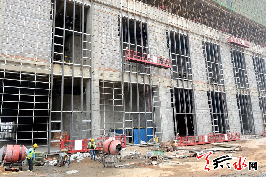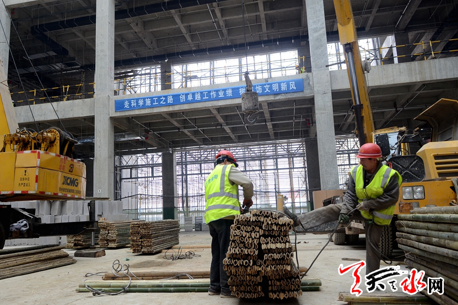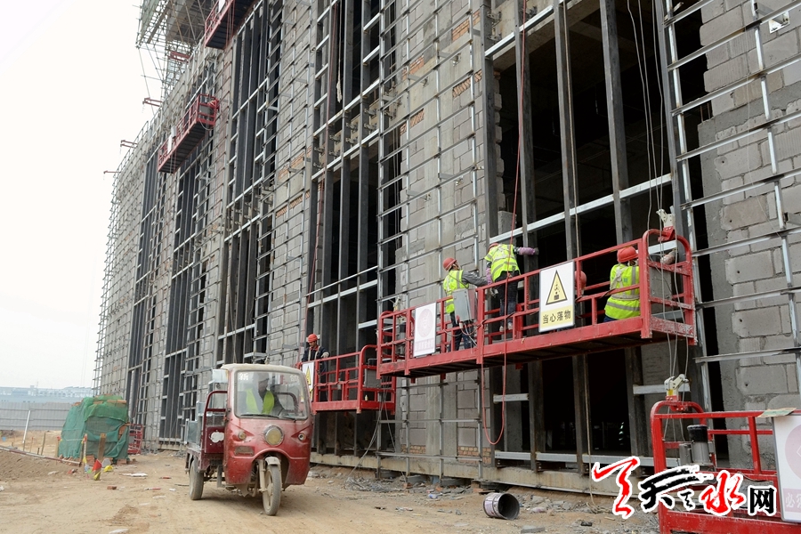 ???? ?2月16日,工人們正在緊鑼密鼓的推進(jìn)天水會(huì)展中心裝飾工程。天水會(huì)展中心總建筑面積6.6萬平方米,地上建筑面積4.9萬平米,地下建筑面積1.7萬平米,為中型展覽館建筑,集展覽、辦公、商業(yè)、媒體發(fā)布等功能為一體。 設(shè)計(jì)風(fēng)格注重吸收中國傳統(tǒng)建筑文化的精華,體現(xiàn)傳統(tǒng)文化的傳承和對(duì)天水當(dāng)?shù)匚拿}的延續(xù),力求達(dá)到適用、簡潔、大氣,同時(shí)兼具地域文化特色的效果。預(yù)計(jì)五月底全面完工。記者 楊璟 攝