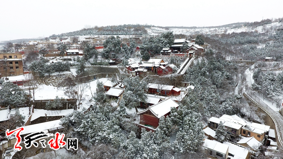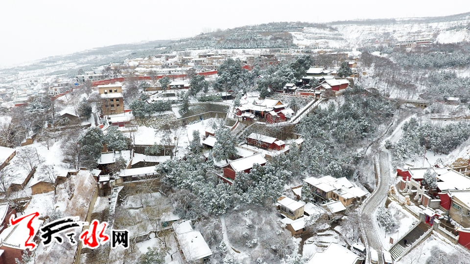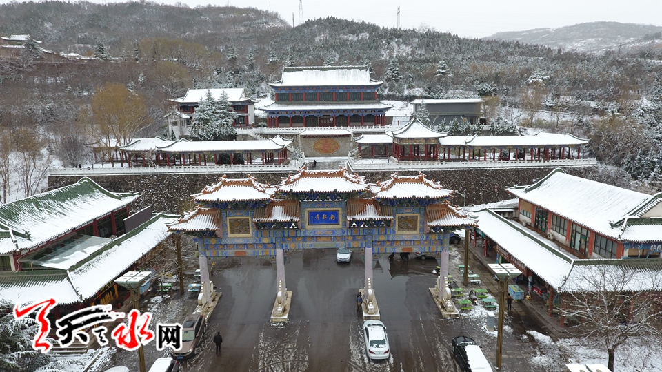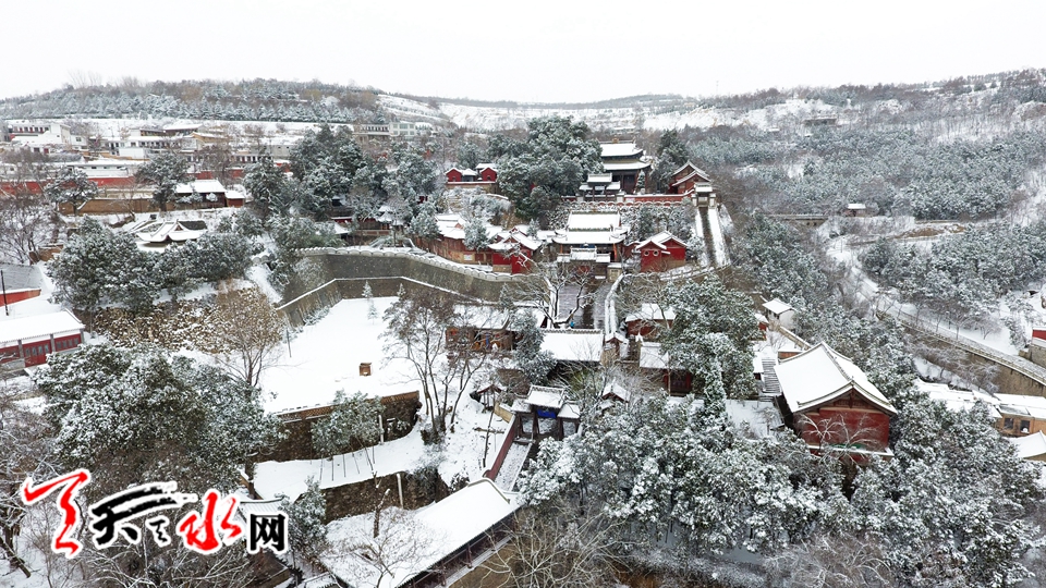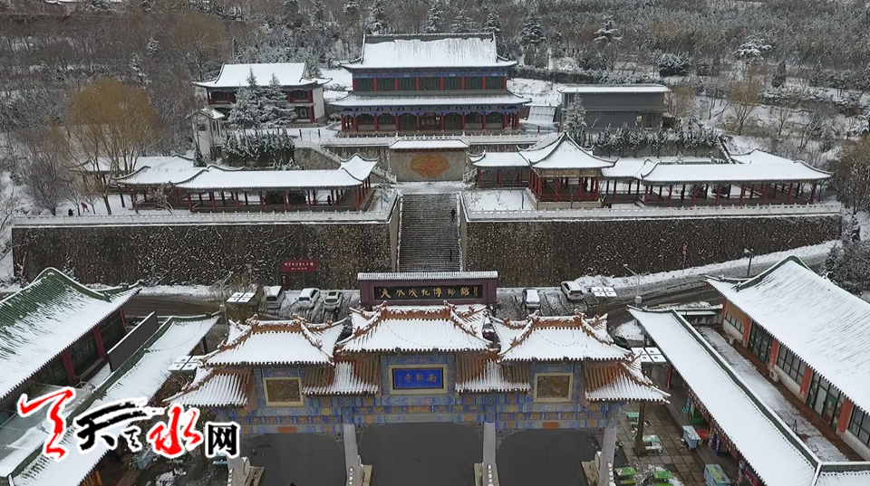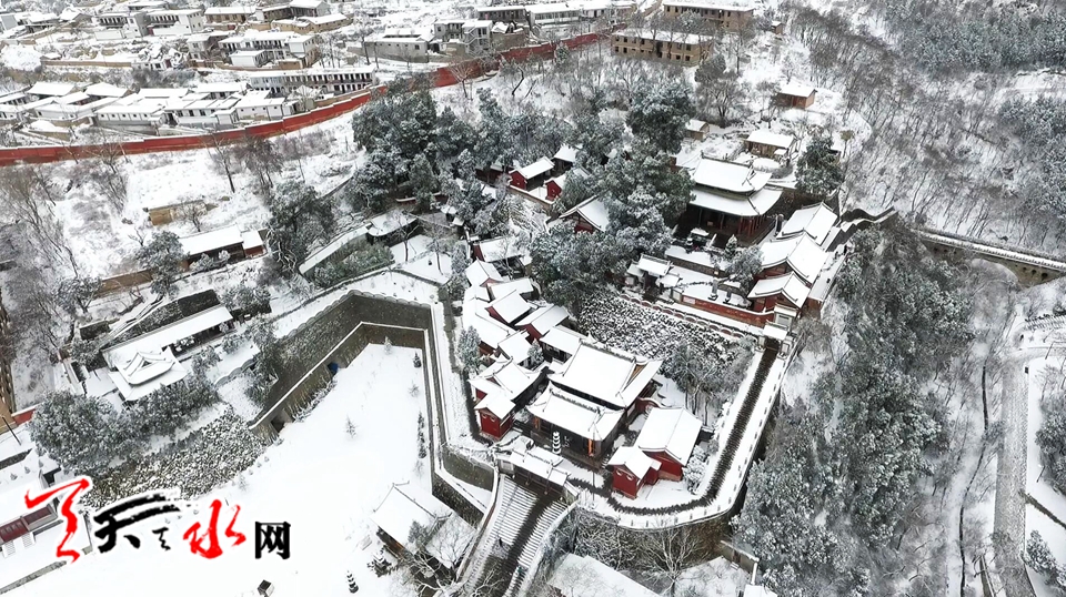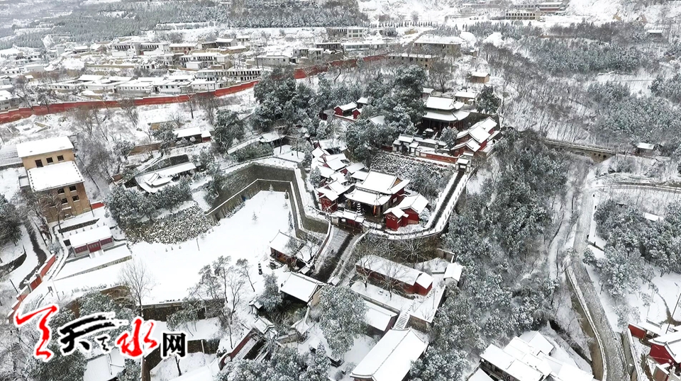 航拍伏羲廟雪景