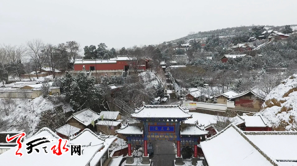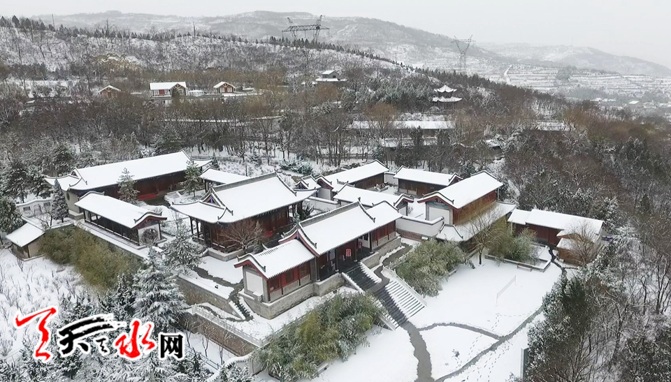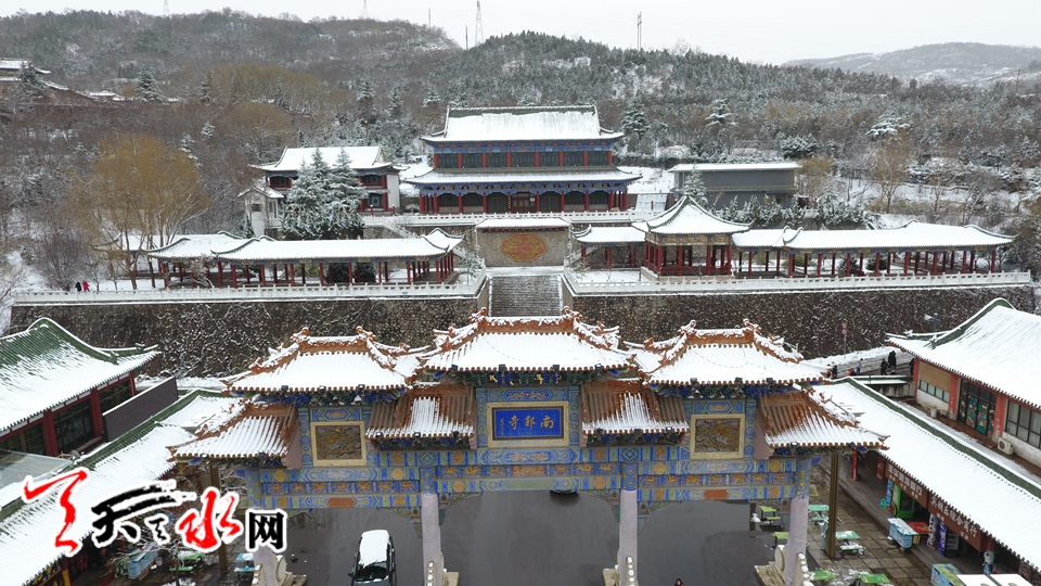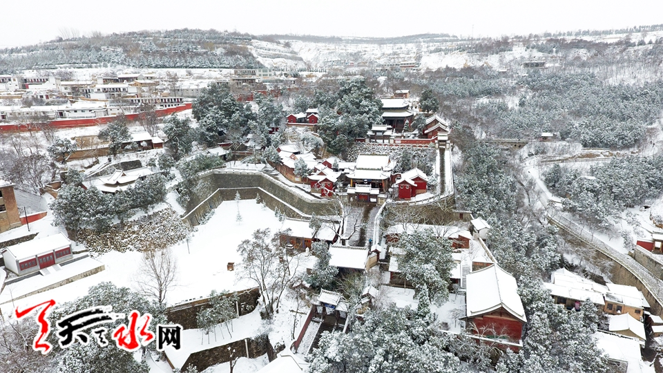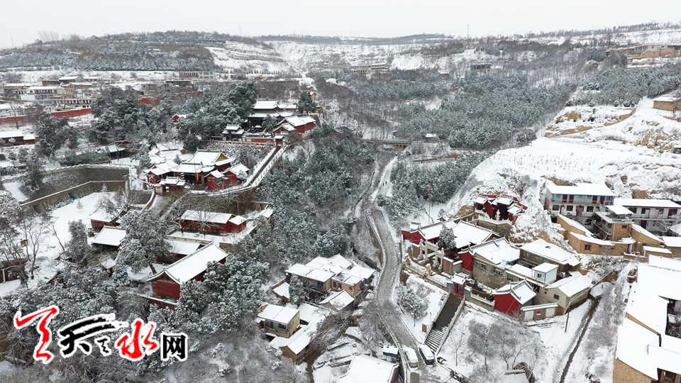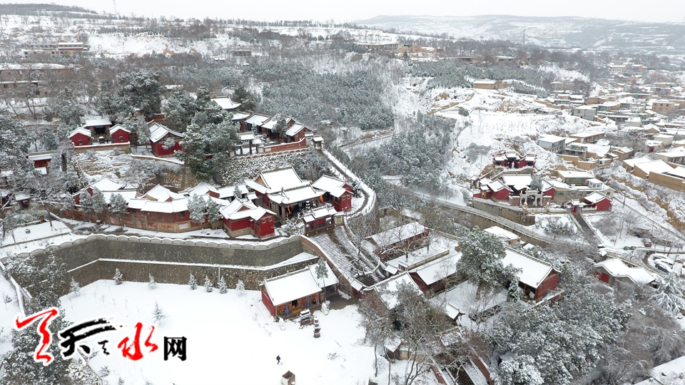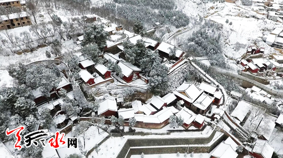 航拍伏羲廟雪景