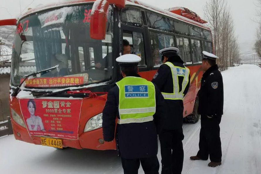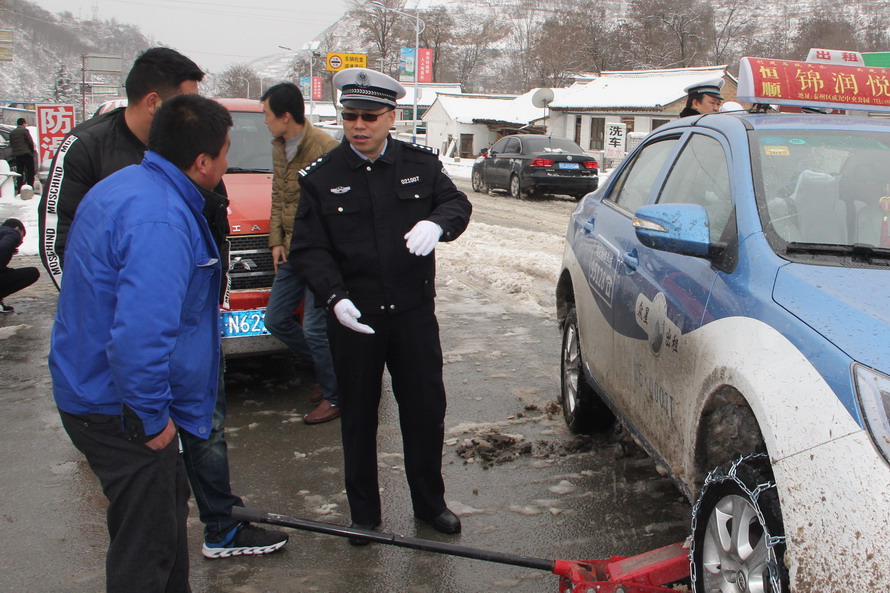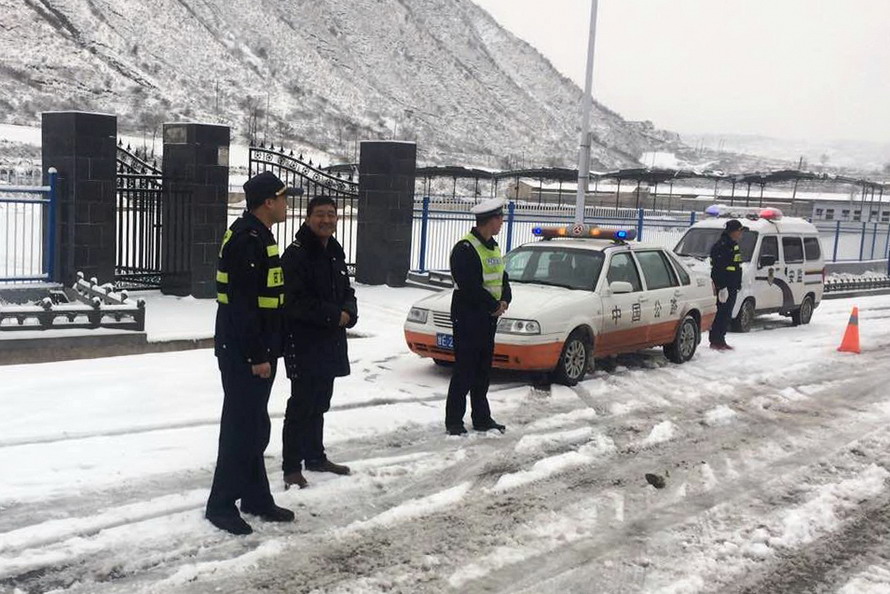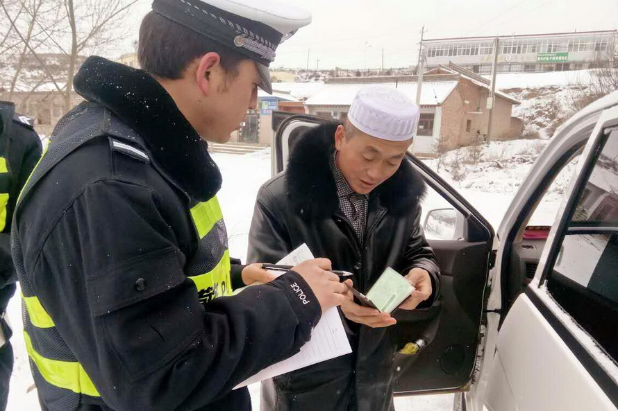 (張家川公安交警雪天保平安)
