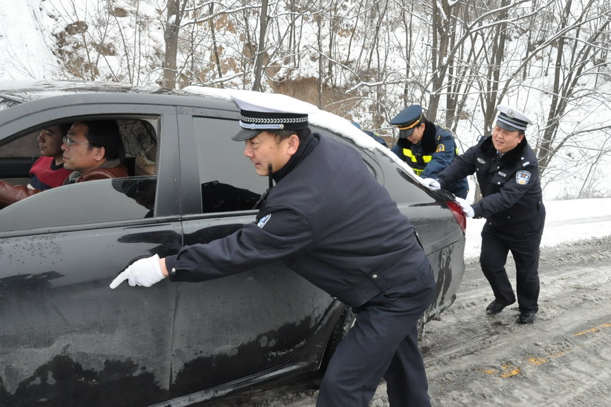 (秦安公安交警雪天保平安)