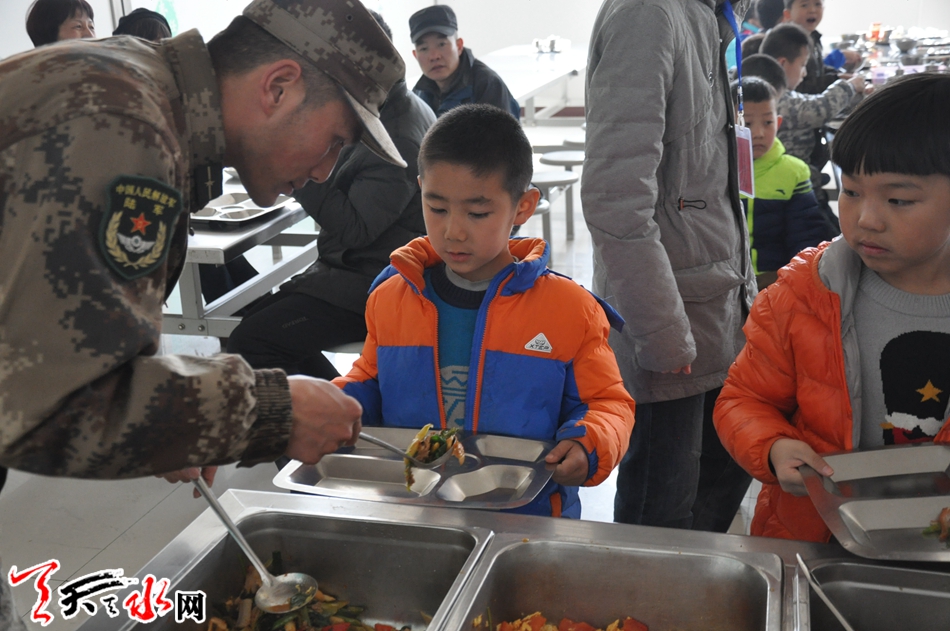 ????不知不覺中,時間已經(jīng)中午,為了讓小記者全方位感知體驗部隊的生活,部隊安排小記者與戰(zhàn)士一起共進午餐,小記者們和戰(zhàn)士一樣排著整齊的隊列從連隊走向餐廳,在餐廳里,這些平日里座等父母端菜遞飯的孩子們拿起餐盤,排隊到餐車前自主盛飯,返回座位便狼吞虎咽的吃起來,就連許多平時不喜歡吃的香菇炒青菜、醋溜土豆絲都吃的津津有味,就連帶隊的工作人員也納悶,“這些娃娃平時在家里這不吃,那不吃,今天這是怎么了,好像吃啥啥香,沒有挑食的,真是怪了哈!”