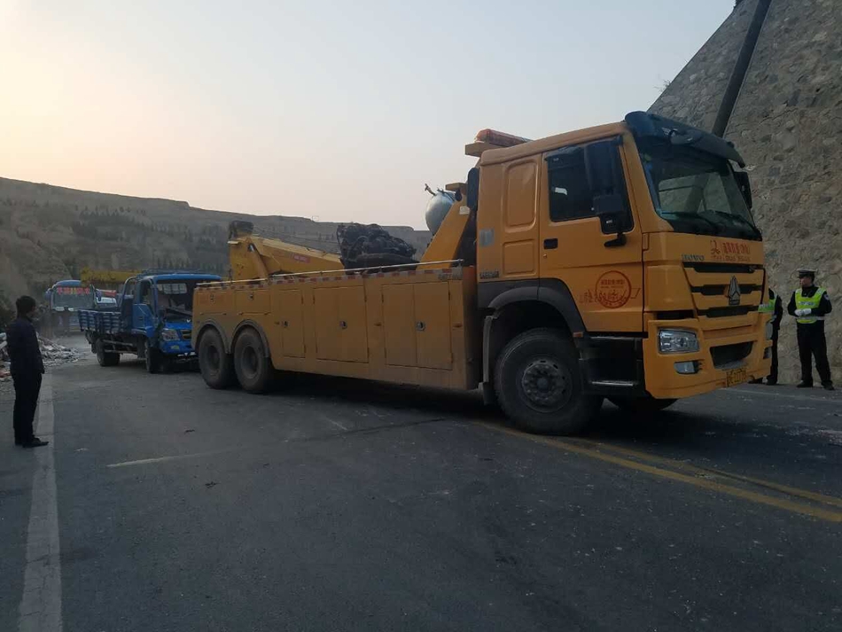 17時10分,高速救援一大隊的報警電話響起,救援隊員們立即趕往現(xiàn)場進(jìn)行救援,4名駕駛員都有不同 程度的輕傷,被及時送往醫(yī)院救治,救援一大隊找來吊車對側(cè)滑小貨車進(jìn)行救援。18點30分,吊車將側(cè) 翻的小貨車拖起,并對路面散落的殘渣進(jìn)行了清理,此時雙向壓車已有一公里。