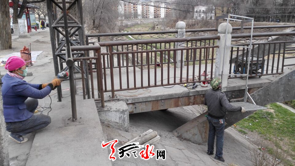 ????天天天水網(wǎng)4日16時訊【記者 蘇中豹】當(dāng)日下午,秦州區(qū)市政工程公司的工作人員正在對位于市五中對面的羅峪河便橋橋位進(jìn)行除污除銹等清理維修。對于施工給行人造成的不便,工作人員希望通過媒體提請市民給予理解配合,并注意通行安全。
