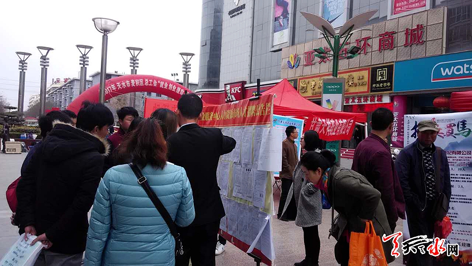據(jù)天天天水網(wǎng)消息 3月4日上午,由天水市總工會主辦,天水市麥積區(qū)總工會承辦的天水市2017年麥積區(qū)工會就業(yè)援助月專場招聘會在天水市麥積區(qū)步行街東段舉行。本次招聘會主要面向社會未就業(yè)的下崗職工和農(nóng)民工、農(nóng)村勞動力轉(zhuǎn)移人員、青年、高校畢業(yè)生及社會其它各類人群,為他們送崗位、送技能培訓(xùn)、送創(chuàng)業(yè)項目、送維權(quán)服務(wù),通過本次招聘會幫助他們找到更合適的職位和提供就業(yè)方面的服務(wù)。