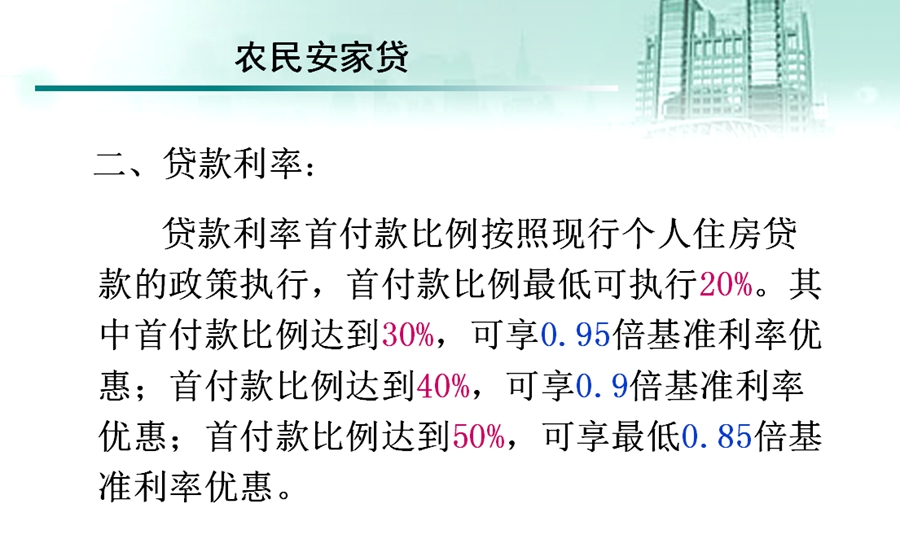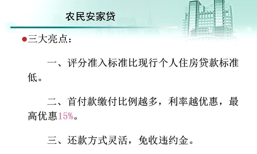 2016年,市委市政府把房地產(chǎn)去庫存作為深化供給側(cè)結(jié)構(gòu)性改革的重要內(nèi)容,突出化解房地產(chǎn)無效供給、有效促進(jìn)了房地產(chǎn)業(yè)和房地產(chǎn)市場穩(wěn)定健康發(fā)展。據(jù)天水市住房和城鄉(xiāng)建設(shè)局消息,全市商品房庫存總量從2015年底的110.71萬㎡減少到2016年12月底的20.1萬㎡,一年去庫存90.61萬㎡。其中支持農(nóng)民工進(jìn)城購房,就是重要舉措之一。為支持農(nóng)民工進(jìn)城購房,農(nóng)行天水分行積極響應(yīng)省市部署,去年8月推出“農(nóng)民安家貸”業(yè)務(wù),在業(yè)務(wù)辦理中,農(nóng)業(yè)銀行優(yōu)化了業(yè)務(wù)流程,原則上受理申請2個工作日明確答復(fù),5個工作日放款。同時將首付款比率最低按照20%執(zhí)行,對首付款比例達(dá)到30%以上的客戶,最低可按基準(zhǔn)利率基礎(chǔ)上下浮動15%執(zhí)行,一系列的優(yōu)惠措施受到了廣大進(jìn)城農(nóng)民工的歡迎。
