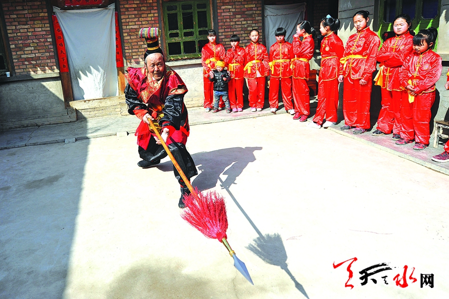 眾所周知,甘谷是三國時期蜀漢名將姜維的故里。千百年來,姜維加鞭槍、姜維黃龍帶把槍,鞭桿套路太子游四門,徒手拳套路護膝捶、黑虎拳、展手雷、猛虎挖心拳,軟器械流星穗、流星錘……一代代崇文尚武的甘谷人把姜維武術套路傳承延續(xù),發(fā)揚光大。