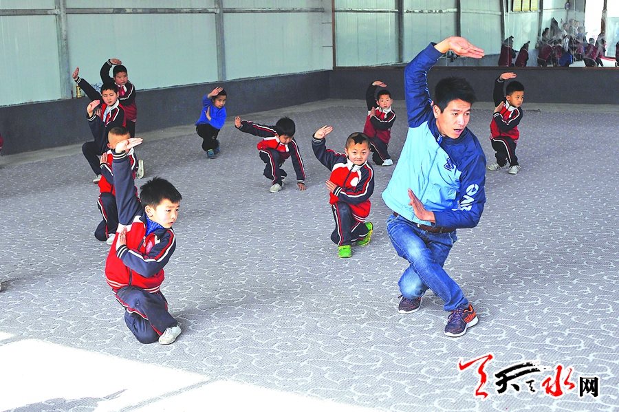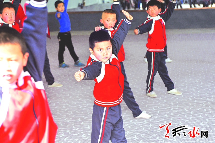 今年8歲的張?zhí)┿懯歉使瓤h姜維武術學校的學員,雖年紀小,但武術套路清晰,手、足、眼、神、步形到位,穩(wěn)扎穩(wěn)打,麻利快捷。在去年金昌舉行的國際武術交流大會上榮獲一金一銀兩枚獎牌。他的教練,甘谷縣姜維武術學校校長張偉更是了得,張偉6歲跟隨武術大師張廣德學武,擅長大洪拳、小洪拳、護膝捶、炮拳、武松單刀、盤山棍、鞭桿等套路,多次參加國際國內武術比賽并獲獎。2010年跟隨武術大師康忠保學習姜維黃龍帶把槍,成為姜維黃龍帶把槍第22代傳人。