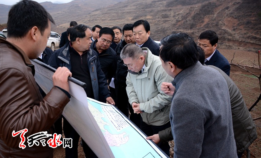 ↑調(diào)研秦州區(qū)大門鎮(zhèn)關(guān)峽村果樹建園項(xiàng)目