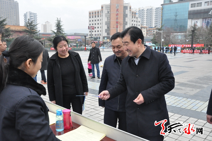 天天天水網(wǎng)訊(記者 劉曉亞)3月22日上午,由天水市水務(wù)局、黃河水土保持天水治理監(jiān)督局、甘肅水投天水供水有限責(zé)任公司三家聯(lián)合舉辦的《中華人民共和國水法》宣傳活動在龍城廣場舉行,副市長霍衛(wèi)平蒞臨活動現(xiàn)場并進(jìn)行了巡視。