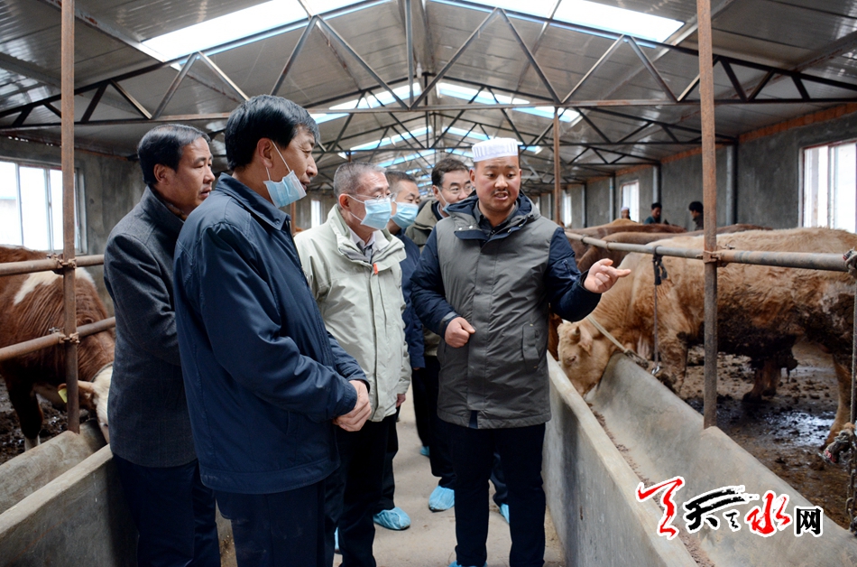 ↑在張家川縣益發(fā)養(yǎng)殖專業(yè)合作社養(yǎng)牛場調研