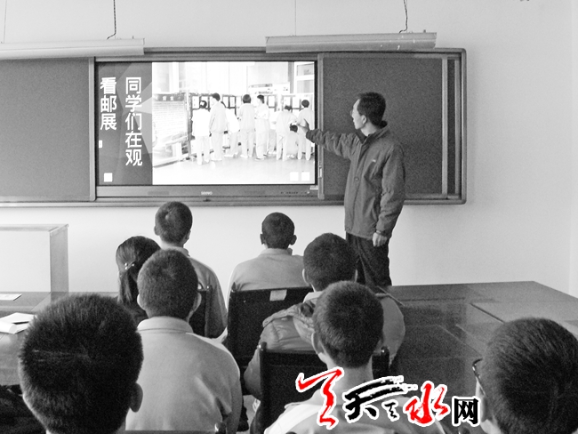 ↑集郵社指導(dǎo)老師在給愛好集郵的學(xué)生上課
