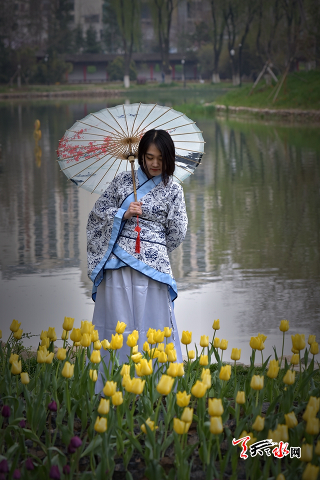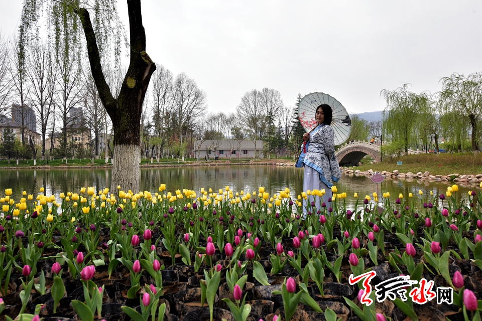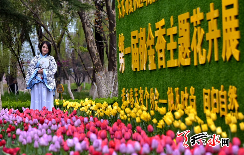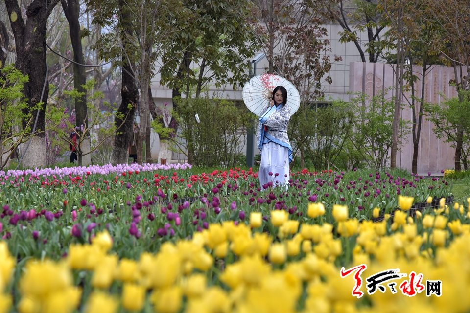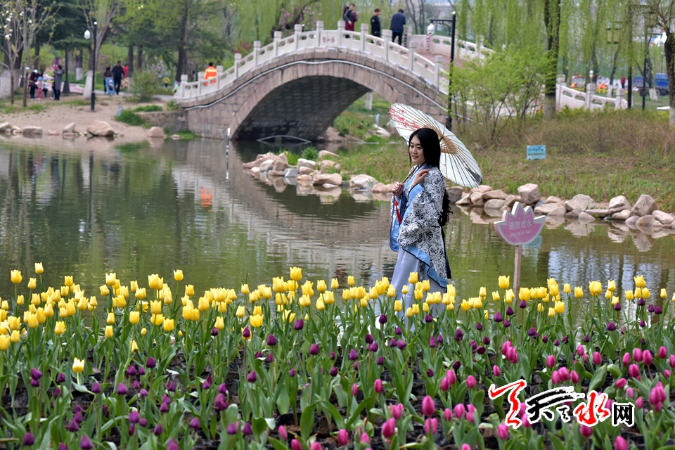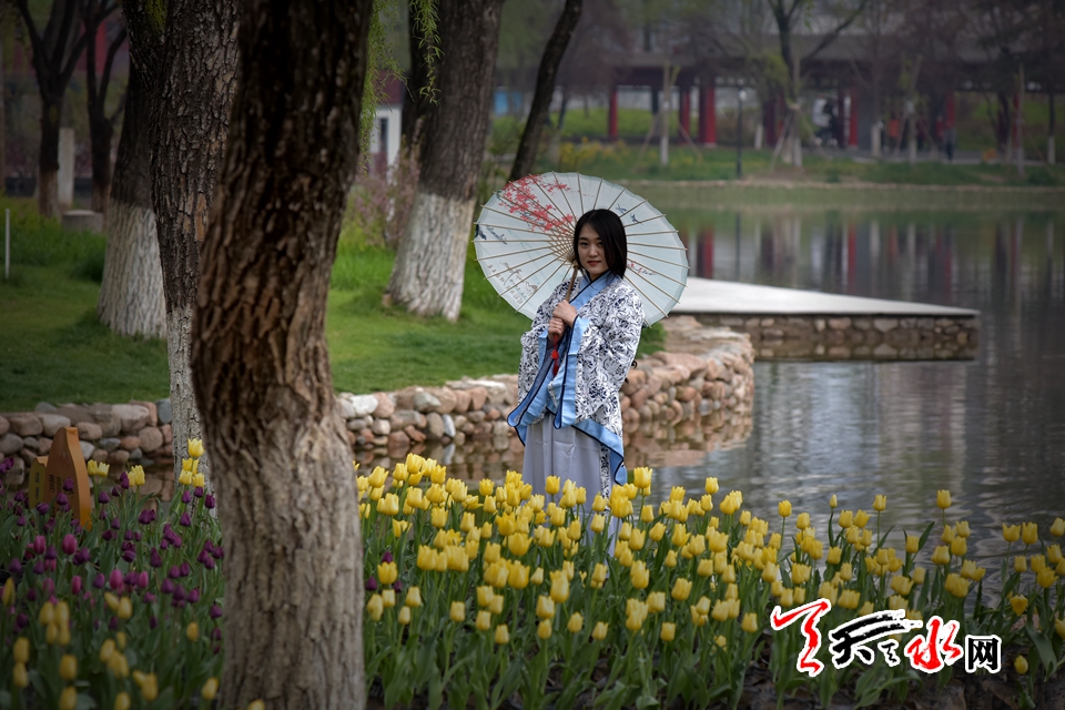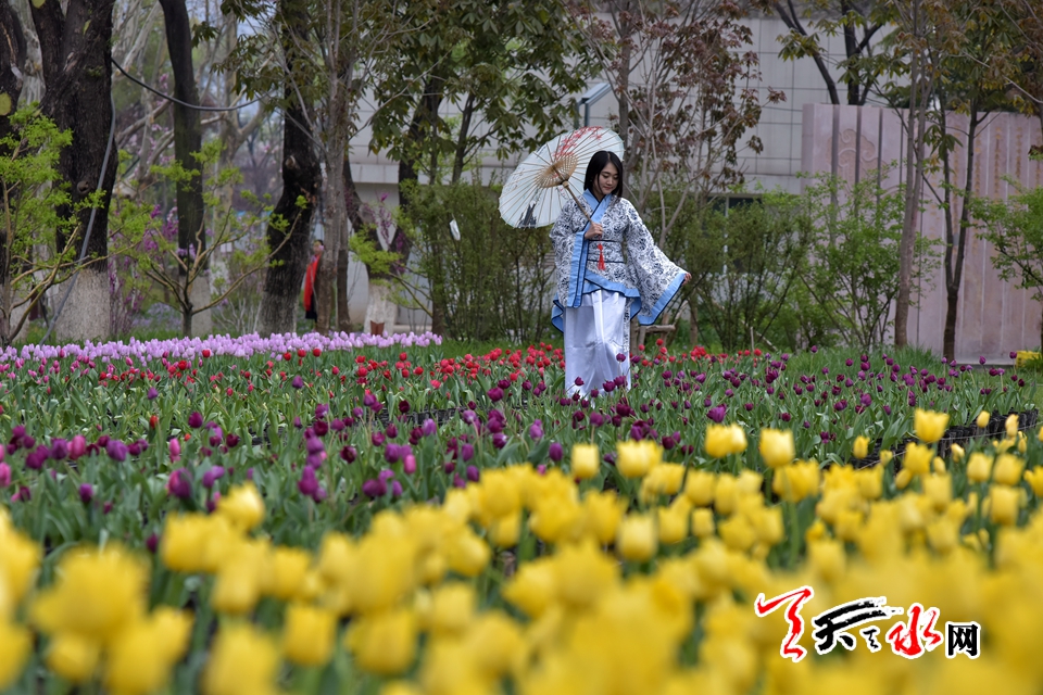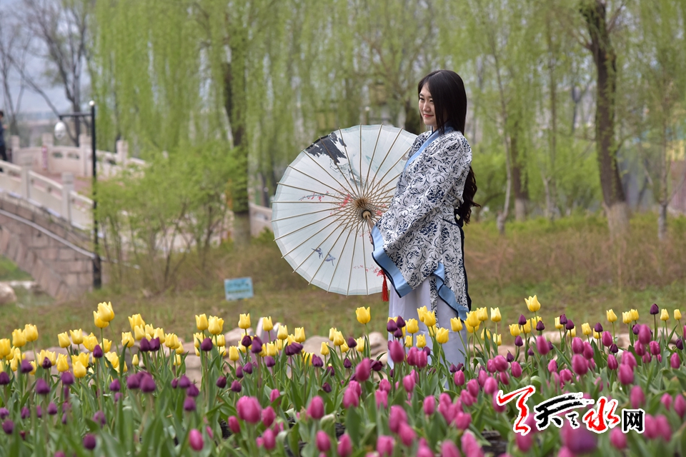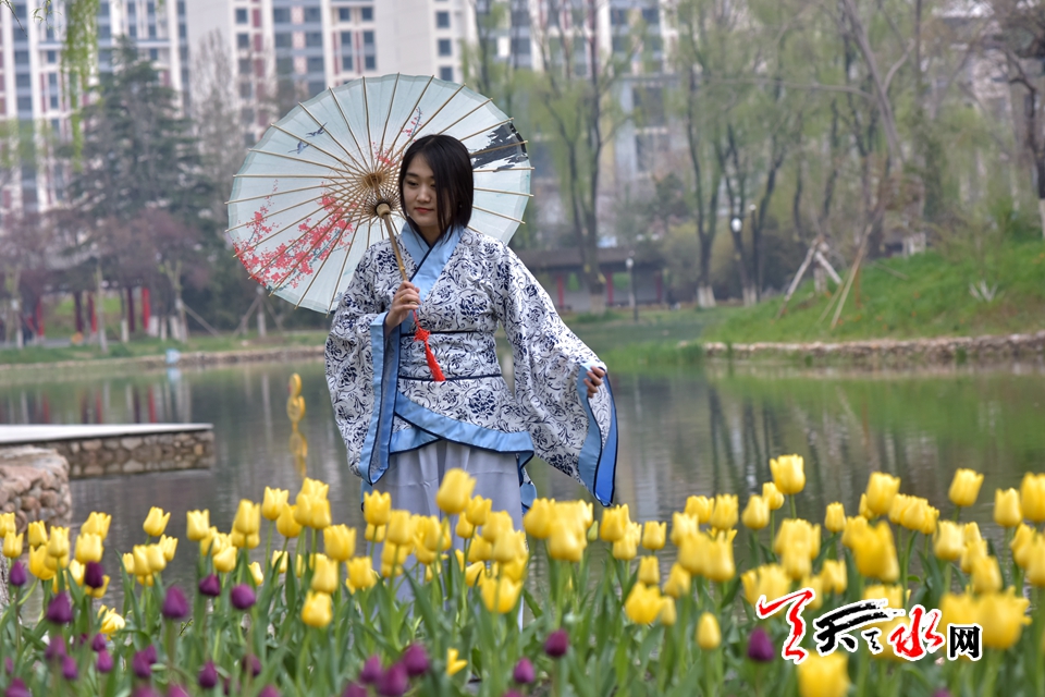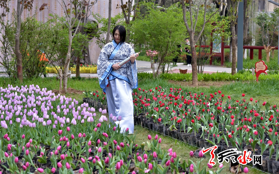 ????4月15日,“佳人相伴 細看花開”——傳統(tǒng)漢服秀,身著漢服的才子佳人把古典氣息和郁金香的高貴典雅融為一體,讓游客感受傳統(tǒng)文化的魅力,體驗傳統(tǒng)文化的趣味。天慶·麥積小鎮(zhèn)馬跑泉公園天一閣展區(qū)4月15日起免費為游客租借漢服,滿足游客拍照需求。