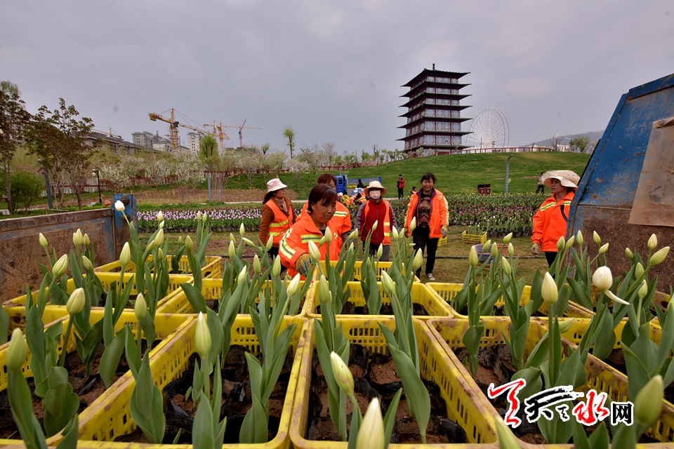 ????天天天水網(wǎng)訊(記者何永德)備受市民關注的第一屆郁金香花卉展將于4月12日正式與游人見面,目前十余萬株各色郁金香正在漸次擺放到位,乘花游心的人們早已按捺不住在這個春天里踏青賞花的腳步,你看圍觀的游人是怎樣被郁金香的濃艷與香粉“俘虜”。