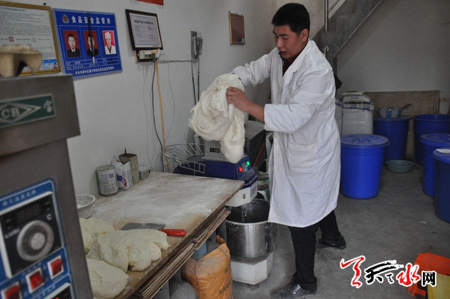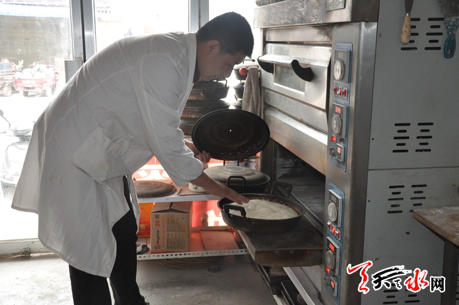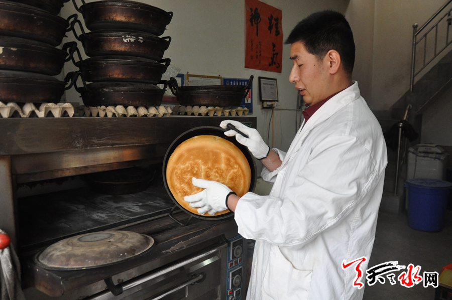 初中畢業(yè)后,陳義軍上技校,安置就業(yè),幾番闖蕩均不及人意,于是他回到了家鄉(xiāng),拜師學(xué)藝,做起了西和鍋盔。2010年,他只身來(lái)到秦州區(qū)藉口鎮(zhèn)租賃鋪面開起了“西和鍋盔”小作坊,7年來(lái),他始終堅(jiān)持自然發(fā)酵,手工制作,零添加的制作原則,使他制作的西和鍋盔名聲鵲起,生意覆蓋周邊鄉(xiāng)鎮(zhèn),現(xiàn)在他每天要烤制150多斤面的鍋盔,一部分在當(dāng)?shù)劁N售,一部分送到緊鄰的關(guān)子鎮(zhèn)銷售,生意可以說(shuō)是“相當(dāng)?shù)幕稹薄?/p>