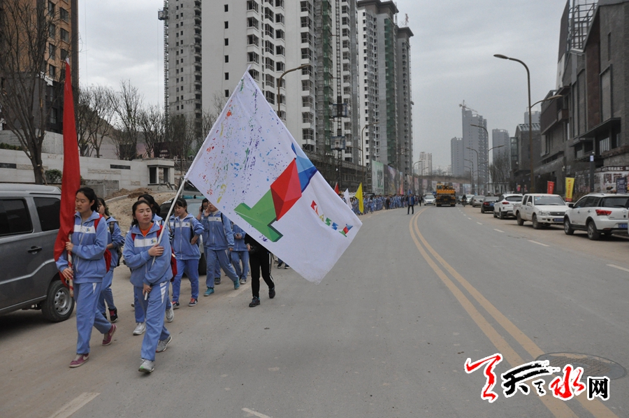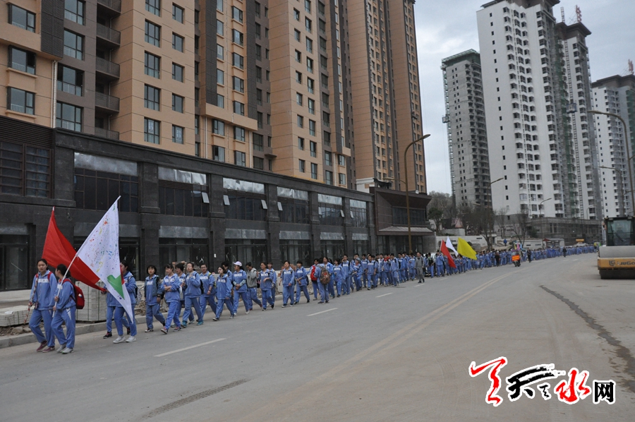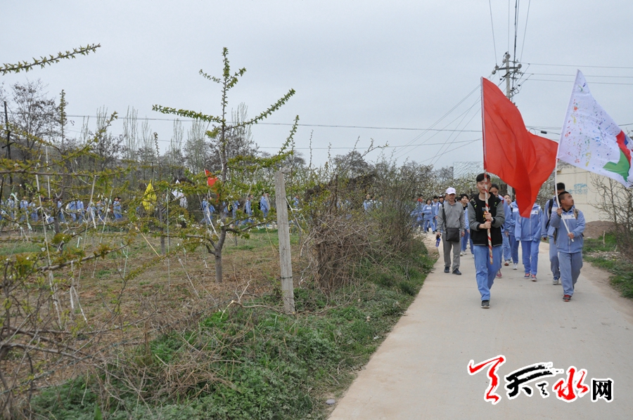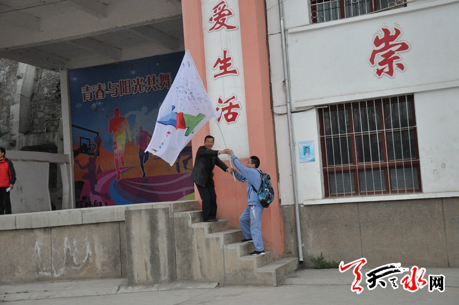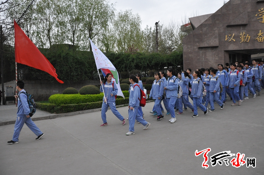 當(dāng)旗手從三中副校長(zhǎng)李來(lái)印手中接過(guò)隊(duì)旗后,校長(zhǎng)王建兵莊嚴(yán)宣布:“天水市三中‘走進(jìn)自然,走進(jìn)新農(nóng)村,走向未來(lái)’研學(xué)旅行活動(dòng)開(kāi)始,所有隊(duì)伍依次出發(fā)!”