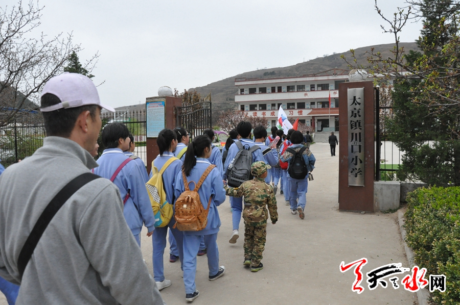 一路歡笑一路歌,隊(duì)伍在不知不覺(jué)中來(lái)到中途修整地--太京友好小學(xué),所有學(xué)生在這里進(jìn)行了半個(gè)小時(shí)的休整,又一路向西前行。