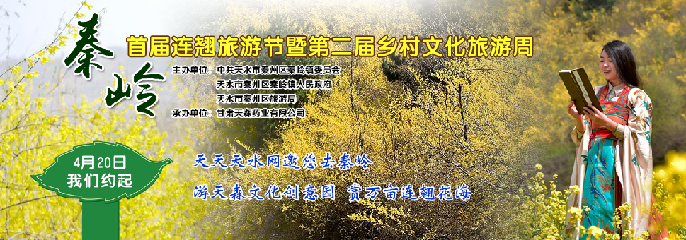 ?游天森文化創(chuàng)意園 賞萬畝連翹花海 參與攝影大賽贏千元大獎 ?【快訊】天水?秦州秦嶺首屆連翹旅游節(jié)暨第二屆鄉(xiāng)村文化旅游周啟幕 ?秦嶺首屆連翹旅游節(jié)天森藥業(yè)三大主題活動即將啟幕 |
