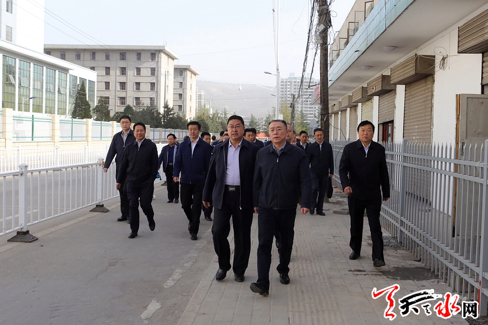????天天天水網(wǎng)訊【記者王曉馨】4月18日上午,市委書(shū)記王銳帶領(lǐng)建設(shè)、規(guī)劃、財(cái)政、綜合執(zhí)法等市直部門(mén)和秦州區(qū)負(fù)責(zé)同志,就師院路綜合治理進(jìn)行深入調(diào)研并現(xiàn)場(chǎng)辦公。他強(qiáng)調(diào),要按照城市發(fā)展總體規(guī)劃,堅(jiān)持科學(xué)系統(tǒng)治理,徹底解決師院路及周邊突出問(wèn)題,加快改善片區(qū)環(huán)境,確保道路安全暢通。