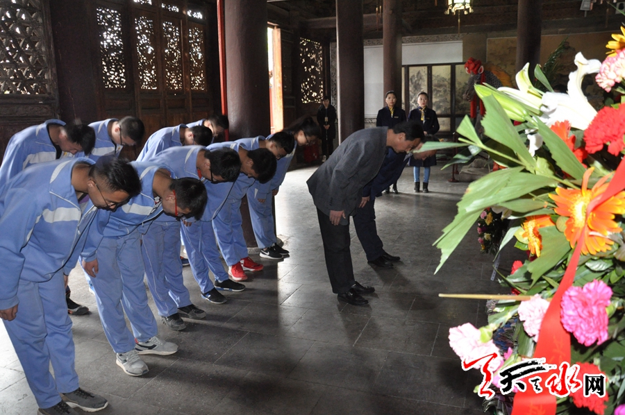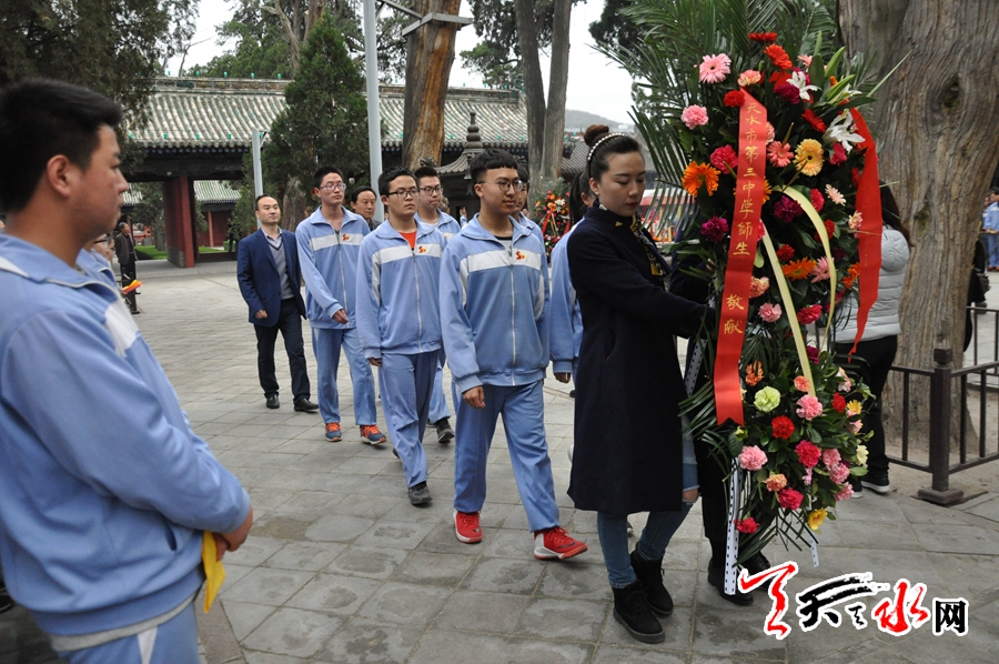 師生代表給伏羲圣像敬獻(xiàn)花籃并行鞠躬禮,清脆悠遠(yuǎn)的磬聲如同醍醐灌頂?shù)那迦?,?00多學(xué)子銘記此刻,銘記自己告別少年的這個(gè)春天的下午,擔(dān)當(dāng)起一個(gè)成年人應(yīng)該擔(dān)當(dāng)?shù)纳鐣?huì)責(zé)任,“求木之長(zhǎng)者,必固其根本;欲流之遠(yuǎn)者,必浚其源泉?!蔽ㄓ羞@樣才能找到自信,找到方向,不忘初心,立志成才。
