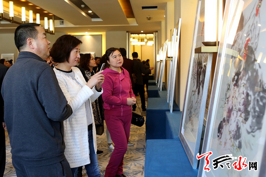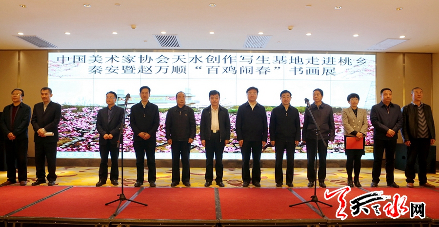 天天天水網(wǎng)訊【記者王曉馨】4月22日,中國美術(shù)家協(xié)會天水創(chuàng)作寫生基地書畫藝術(shù)家走進(jìn)桃鄉(xiāng)秦安暨趙萬順“百雞鬧春”畫展在秦安縣大地灣印象酒店開展。